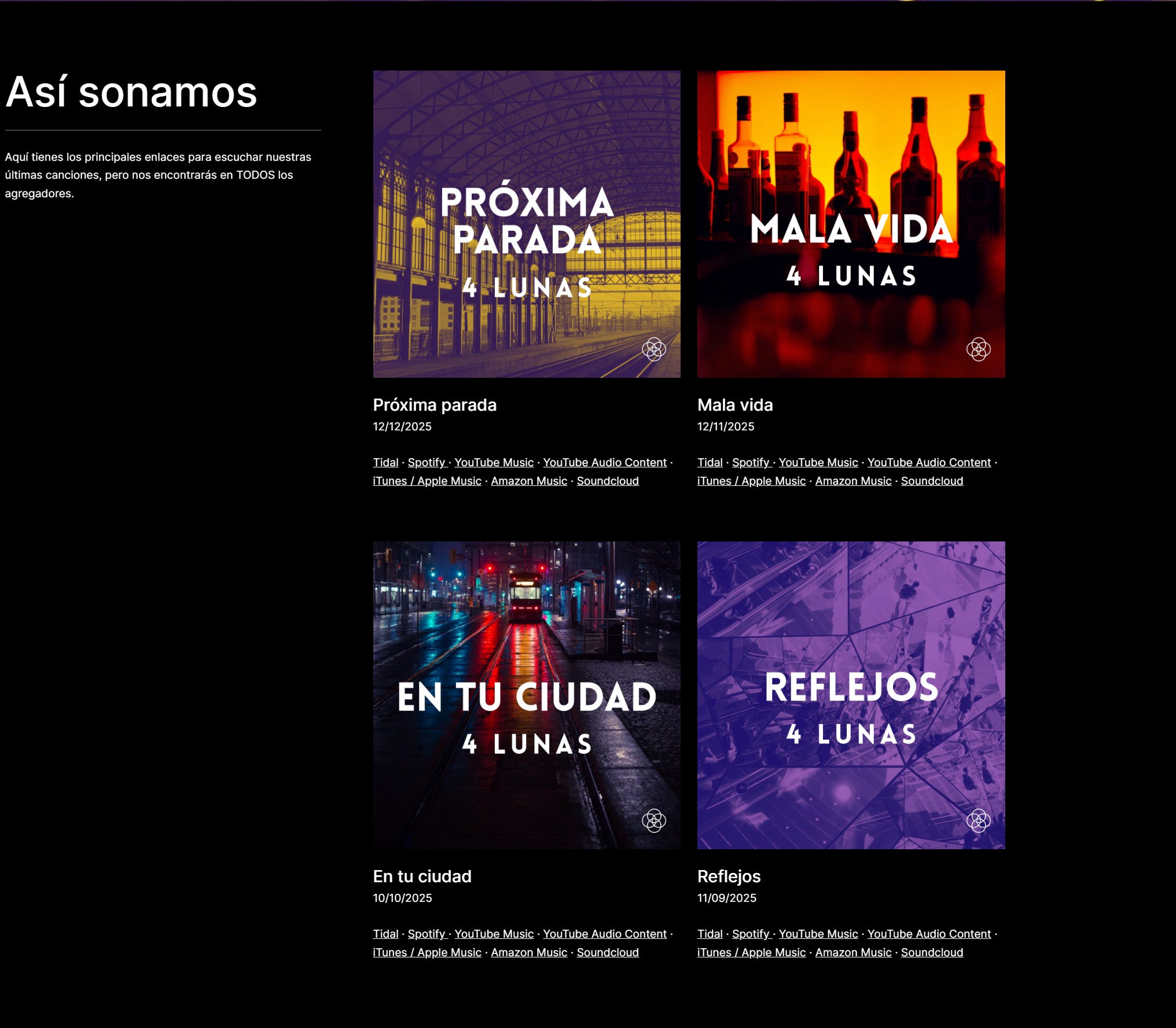 Había una vez un grupo de músicos (Luís Pérez, Guillermo Carreta, Dani Rubio y María Latorre) que se hicieron amigos y montaron una banda. Primero se llamó Sonora y luego 4 Lunas. Empezaron tocando versiones, pero poco a poco, crearon un repertorio propio, y este 2025, después de ocho años, por fin pudieron grabar 4 temas en un estudio y distribuirlos en plataformas online: