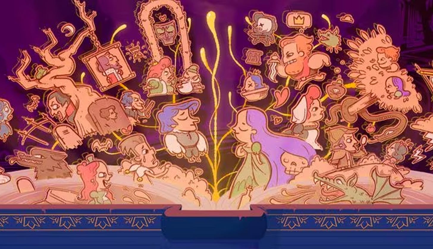 Este juego es más reciente, de marzo de 2023, y parece que ha tenido valoraciones muy positivas. No me extraña, porque es entretenido y original como él solo. Tienes que intentar que los personajes interactúen entre ellos, para conseguir el final de historia que te proponen, y ver cómo cambia la historia con las diferentes variables que vas introduciendo, es muy muy divertido.