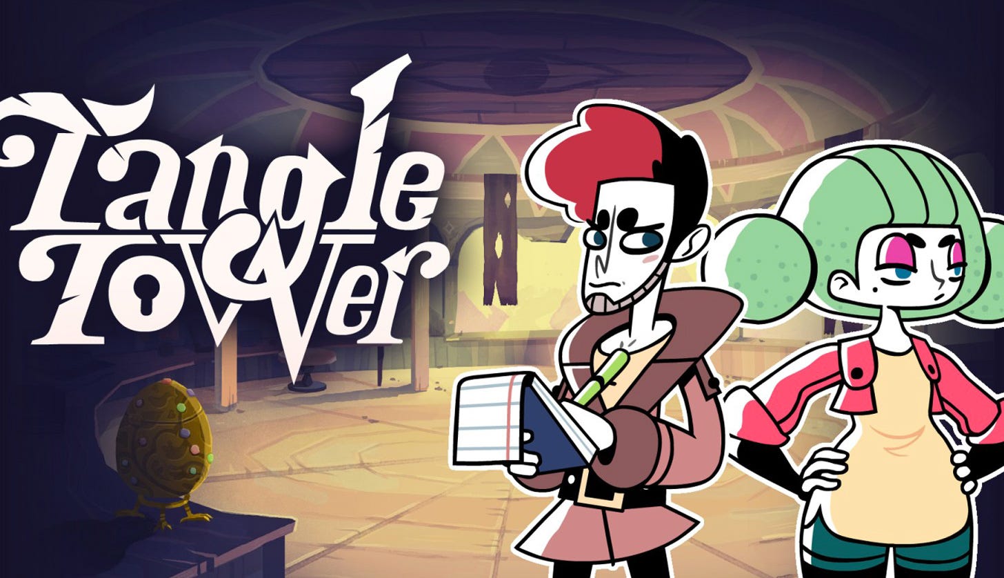 Tangle Tower tiene ya unos años, pero es que ya sabes que yo no voy nunca al día ni con los juegos, ni con los libros, ni con nada. Descubro novedades a mi ritmo. En este juego narrativo acompañamos a los detectives Grimoire y Sally en la investigación de un asesinato, el de Freya Fellow, ocurrido en Tangle Tower. Puntos muy a favor de que le eches un ojo: los diálogos, los personajes (me encanta Poppy), la ambientación, la jugabilidad, que es casi puramente narrativo y que no me vi venir la resolución (aunque algunas cosas sí las acerté). Nosotros tenemos la versión para jugar en la tableta y nos costó unos 4€.
